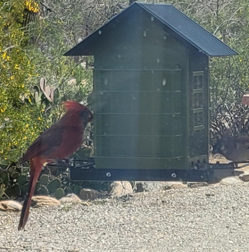 How do birds in American courtyards use the bird feeders in American courtyards