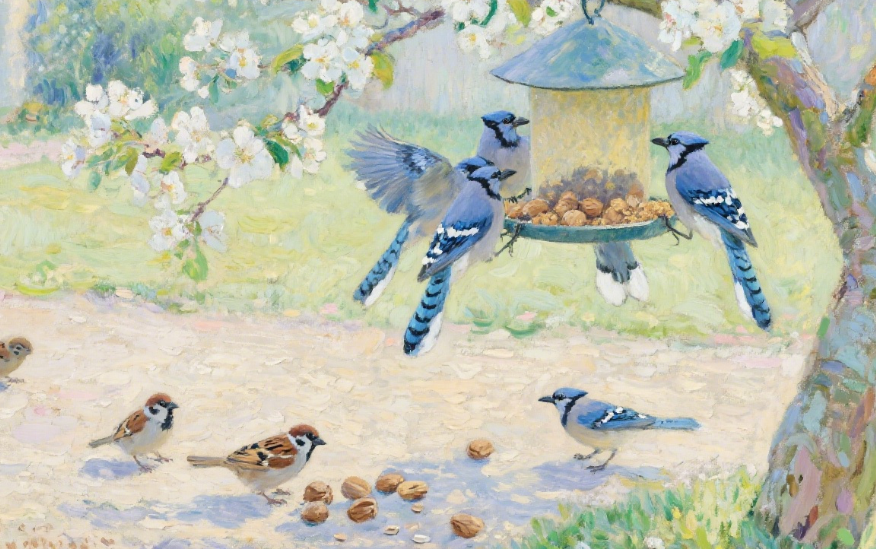 In summary, the feeding behavior of birds in American gardens, though seemingly a simple natural phenomenon, brings tangible value to humans in terms of ecological conservation, psychological regulation, educational enlightenment, and community interaction. It also allows people to re-examine their connection with all things in nature through close interaction, thereby understanding the profound significance of the life community.