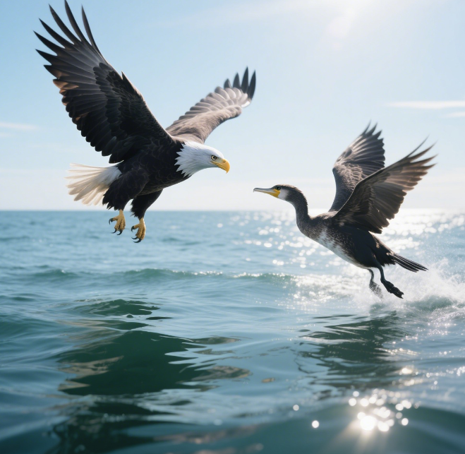 Raptors in the sky are formidable adversaries for birds. White-headed sea eagles, the national bird of the United States, dominate the skies with their sharp eyes, powerful talons, and excellent flight. They mainly prey on fish, but also attack other waterfowl. In the coastal and large lake areas of North America, white-headed sea eagles can often be seen chasing and snatching food caught by cormorants, autumn sand ducks, and other birds, and even directly hunting these birds. Golden eagles, on the other hand, are top predators in the alpine and grassland regions, with a wide range of prey, including grouse, thunderbirds, and other medium-sized birds. With the impact of a high-speed dive, golden eagles are able to instantly subdue their prey.
