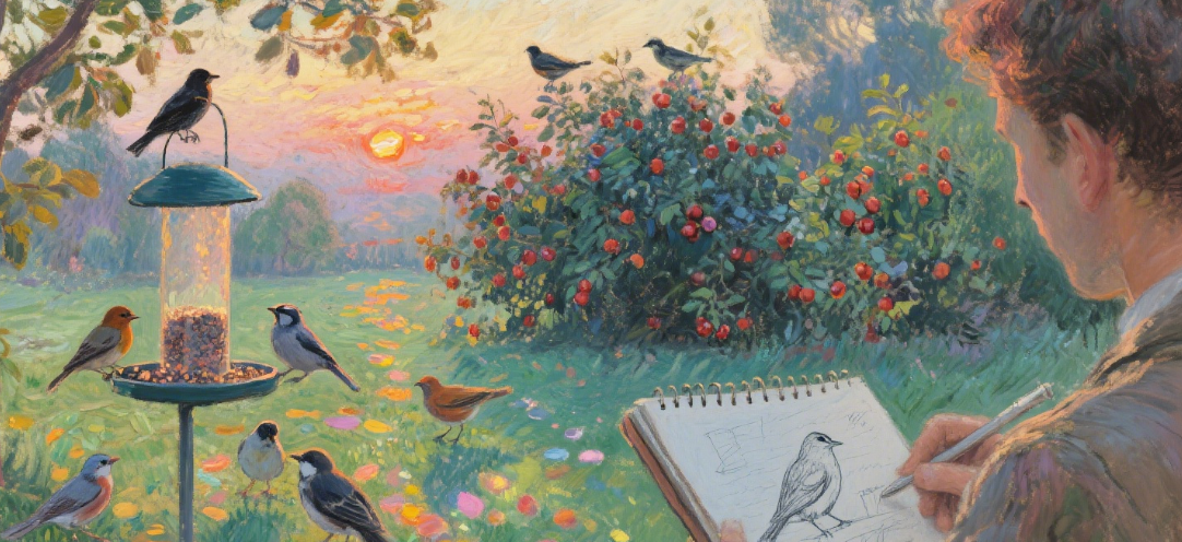 When birdwatching, choose the appropriate time and location. Most birds are more active in the early morning and evening, making these the best times for observation. During these periods, birds engage in activities such as foraging and singing, making them easier to observe. In terms of location, areas such as trees, shrubs, flower beds, and ponds in gardens are common habitats for birds. You can find a concealed spot near these areas, such as sitting on a chair under a tree or hiding in a corner of the balcony, to avoid being directly exposed to the birds' line of sight and startling them. When observing, move gently and slowly, avoid loud noises, and minimize disturbances to the birds. If you notice birds nesting or raising chicks, do not approach them and maintain a safe distance to avoid disrupting their breeding.
